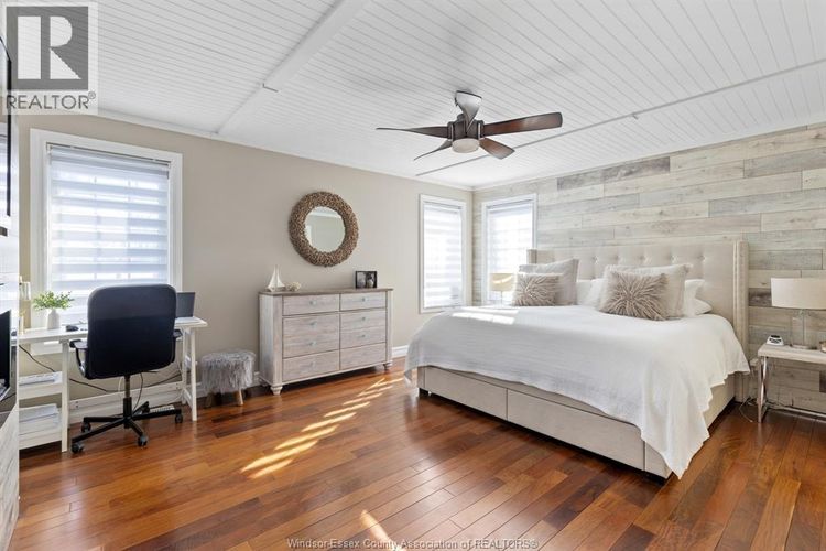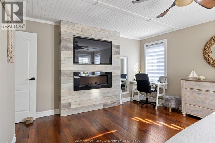 Located on Crystal Bay Drive on historic Boblo Island, this well-appointed two-storey home offers a blend of modern finishes and island lifestyle living just minutes from Amherstburg. The property features 5 bedrooms and 4 bathrooms, including a main-floor primary suite. The open-concept main level is designed for everyday living and entertaining, highlighted by a custom kitchen island crafted from reclaimed wood sourced from the former Boblo Island Bumper Car Building - a unique architectural feature that reflects the island's history. The fully finished lower level provides additional living space, including a large recreation/great room, bedroom, bathroom, and flexible-use areas suitable for guests, fitness, or family living. Outdoor spaces offer opportunities for entertaining and relaxation in a waterfront island setting. Residents of Boblo Island enjoy access to ferry transportation, walking trails, and golf cart- friendly community living. A distinctive opportunity to own a spacious home in one of Windsor-Essex County's most unique waterfront communities. (id:26452)