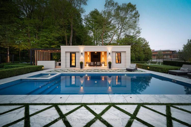 Why build when you can move right in? Skip the dust, delays, and hidden costs your dream home is here, fully finished and ready to enjoy. Tucked away on one of Nobleton's most private and prestigious crescents a street quickly transforming into an enclave of custom luxury estates this stunning modern Georgian residence redefines elegance and functionality across over 10,000 sq. ft. of living space. Perched on a rare -acre lot, the home showcases 7000 sq. ft. above grade and an additional 3000 sq. ft. in the fully finished basement all thoughtfully designed for elevated living and entertaining. The show-stopping primary suite offers a penthouse-style retreat complete with a cozy gas fireplace, a mini bar, a lavish spa-inspired ensuite, and a jaw-dropping two-storey wardrobe closet fit for a fashion connoisseur. Throughout the home, a modern minimalist design is seamlessly executed with 11-ft ceilings, expansive open-concept living spaces, and a chef-inspired grand kitchen that connects to a family-sized mudroom and your oversized 3-car garage with potential for car lifts to accommodate up to 6 vehicles. Work from home in style with your own entrepreneurs dream office, boasting a 20-ft ceiling and an impressive floor-to-ceiling window for maximum inspiration. Downstairs, the entertainment possibilities are endless enjoy a full nanny suite, home gym, private theatre, TV lounge, games room, and an indoor sport turf zone. Step outside and experience resort-style living year-round: a covered alfresco dining lounge, two outdoor kitchens, two gas fireplaces, a cabana lounge with a full bar, second kitchen, built-in wood-burning pizza oven, poolside ensuite with shower, and your own steam sauna. This is the kind of backyard you'll never want to leave.6 Forestave Crescent is not just a home its a lifestyle. One that's built, turnkey, and tailored for those who appreciate the best in luxury, comfort, and design.