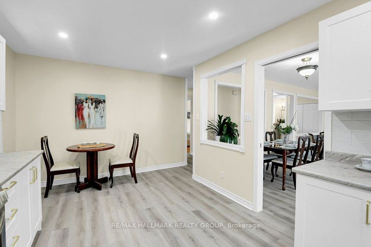 This bright and spacious 3-bedroom bungalow with attached garage is perfectly situated for active families and seniors. Walking distance to the Nepean Sailing Club, Andrew Hayden Park's waterfront trails, the Corkstown Park community pool, Lakeview Public School, and the Moodie LRT station. DND on Moodie is a quick six-minute drive, with shopping and dining nearby along Carling Avenue and at Bayshore Mall.The main floor features an oversized window overlooking the back yard, a cozy gas fireplace and patio door access to the private backyard that backs onto Lakeview Park - perfect for walking the dog or kids! The spacious, renovated eat-in kitchen offers sleek white cabinetry with gold accents, LED pot lights, stainless steel appliances, and elegant countertops. The main 4 piece bath has a new, sleek white vanity with gold accents, tile flooring, and a tub/shower combo. The modern updates adds to the home's fresh, move-in-ready feel. The generous primary bedroom is complemented by two additional well-sized rooms ideal for a child's room, office, or guest space. The finished lower level adds a large family room, fourth bedroom or gym area, laundry room, and a utility room with workbench. Main and lower-level updates were completed in 2024. Roof (2019) and furnace (2011); A/C is older but functioning well. Original hardwood remains under the new main-level flooring.