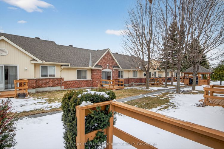 * * OPEN HOUSE FRIDAY APRIL 3rd 2-4pm * * Welcome to a rare gem in the heart of Old Stittsville! This 55+ life lease corner-unit bungalow row offers a simplified lifestyle without sacrificing space or charm. Situated in a well-managed adult community - it's not a condo, it's even better - with low monthly fees that include property taxes, building insurance, lawn care, snow removal and more. AND there's no land transfer tax to pay! Enjoy the freedom of a private entry and your own deck. Inside, the bright, open-concept main level shines with granite countertops in the kitchen and bathroom, a walk-in pantry, and a sunny dining area open to the light-filled living room with patio slider to your deck with perennial gardens, overlooking a landscaped courtyard parkette with a gazebo and mature trees. The spacious primary bedroom boasts a triple closet, while the second bedroom is bright with ample storage. Laundry is conveniently located on the main floor. The finished basement adds incredible value with a large recreation room, a den - perfect for a movie room, a home gym, or a hobby room - as well as a massive storage space. One exclusive parking spot is right at your door, with visitor parking to the right and left just steps away. Step outside to enjoy the heritage warmth of Stittsville Village, within walking distance to shops, cafes, pharmacies, the library, and wooded trails. Downsizing doesn't have to mean renting - embrace affordable, low-maintenance living in this vibrant community. Offers welcome Thursday, April 9th.