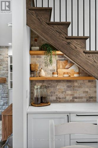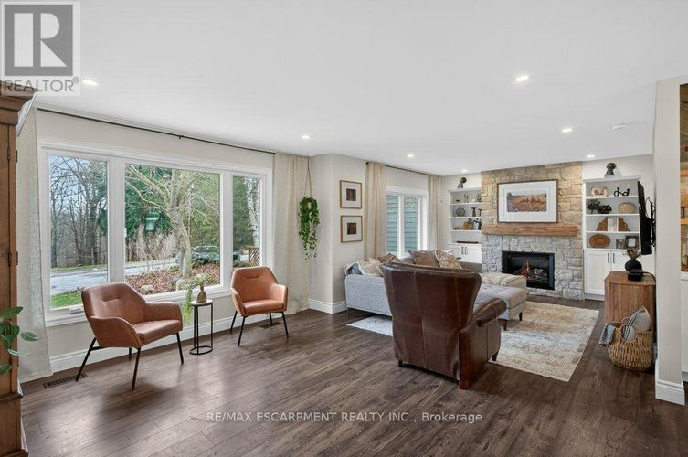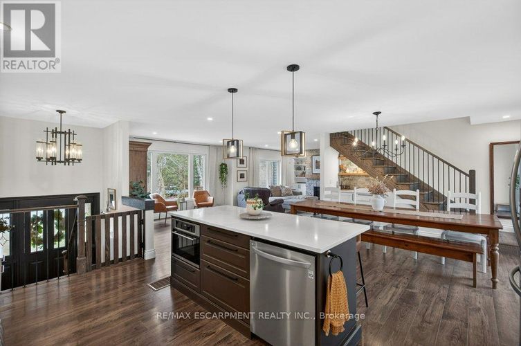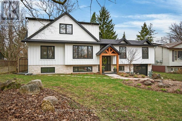 Absolutely stunning 4 bedroom plus den, 3.5 bathroom renovated home on a quiet dead end street in Waterdown's beautiful core! This is the home you have dreamed of! The gorgeous exterior finishes makes this home an absolute stand out! A large addition was completed in 2023 almost doubling the square footage of this home. The family and entertaining friendly open layout on the main floor features a beautiful kitchen with large island, quartz counters and stainless appliances. A large dining area with sliders to the rear yard and great room with gorgeous gas fireplace flanked by built-ins provide seamless flow for keeping an eye on the kids or staying engaged with guests while preparing a meal. A built-in coffee servery is another part of the incredible detail and thought put into this home! A main floor laundry and powder room area provides access to the rear yard. In the other end of the main floor you will find 3 bedrooms and a 4 piece bathroom. A hardwood staircase takes you to the absolutely incredible primary retreat! This one will take your breath away featuring vaulted and timber beam ceiling, french doors to a juliette balcony, an expansive walk-in closet with built-ins and a gorgeous ensuite with stand alone soaker tub, glass enclosed shower and a double custom vanity! The lower level is completely finished with a large family room, play area, workout space, large storage area, den and mudroom with built-ins with access to the attached garage. The spacious backyard has a large upper deck and a gorgeous stone patio with firepit. BONUS is a custom 10 x 12 outbuilding matching the home in finishes. It is insulated and has heating and cooling - ideal for a home office, he/she shed or workshop! This location can't be beat for those looking for a quiet spot to call home, yet conveniently located in the hub of it all, walking distance to schools, shops, restaurants, trails and Memorial Park. Homes like this rarely come along!